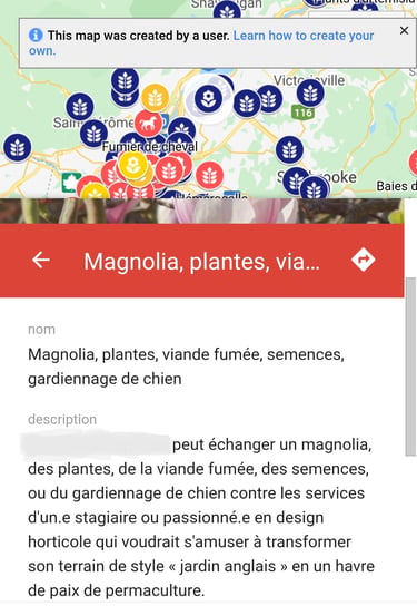 Les membres du groupe Facebook de Jardin Gratuit aiment beaucoup utiliser la carte géographique. Que ce soit pour y dénicher un p'tit quelque chose d'intéressant, ou pour y offrir des trucs ou ses services de jardinier bénévole.